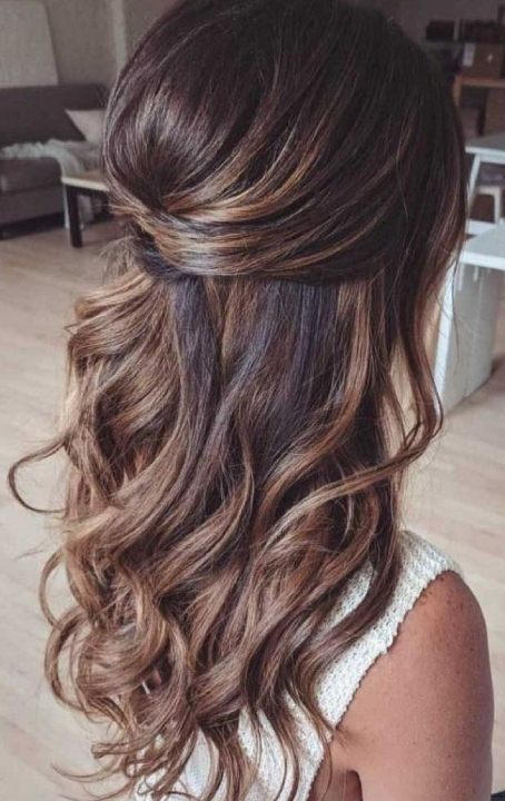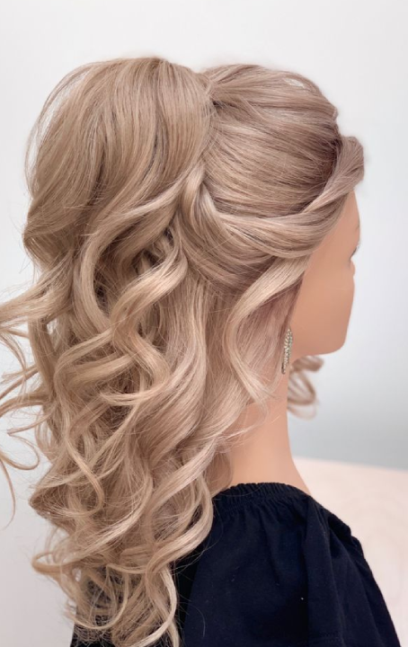 half up half down” hairstyle WE OFFER to a style where only the top section of hair is pulled back and secured (like in a ponytail or bun), while the bottom half of the hair remains loose and flowing freely, essentially dividing the hair horizontally with half pulled up and half left down.WE PERFORMED DRY HAIR. BLOWOUT IS NOT INCLUDED.