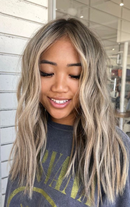 natural hair color is restored at the roots to blend seamlessly with the rest of the hair.